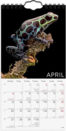 Bildkalender i litet format för din vägg. Kalendern innehåller bilder på vilda djur.